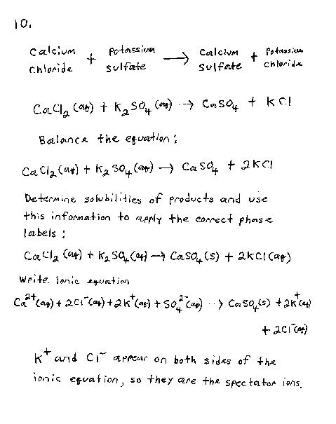 Here is how you decide which ions are spectator ions when aqueous solutions of calcium chloride and potassium sulfate are mixed.